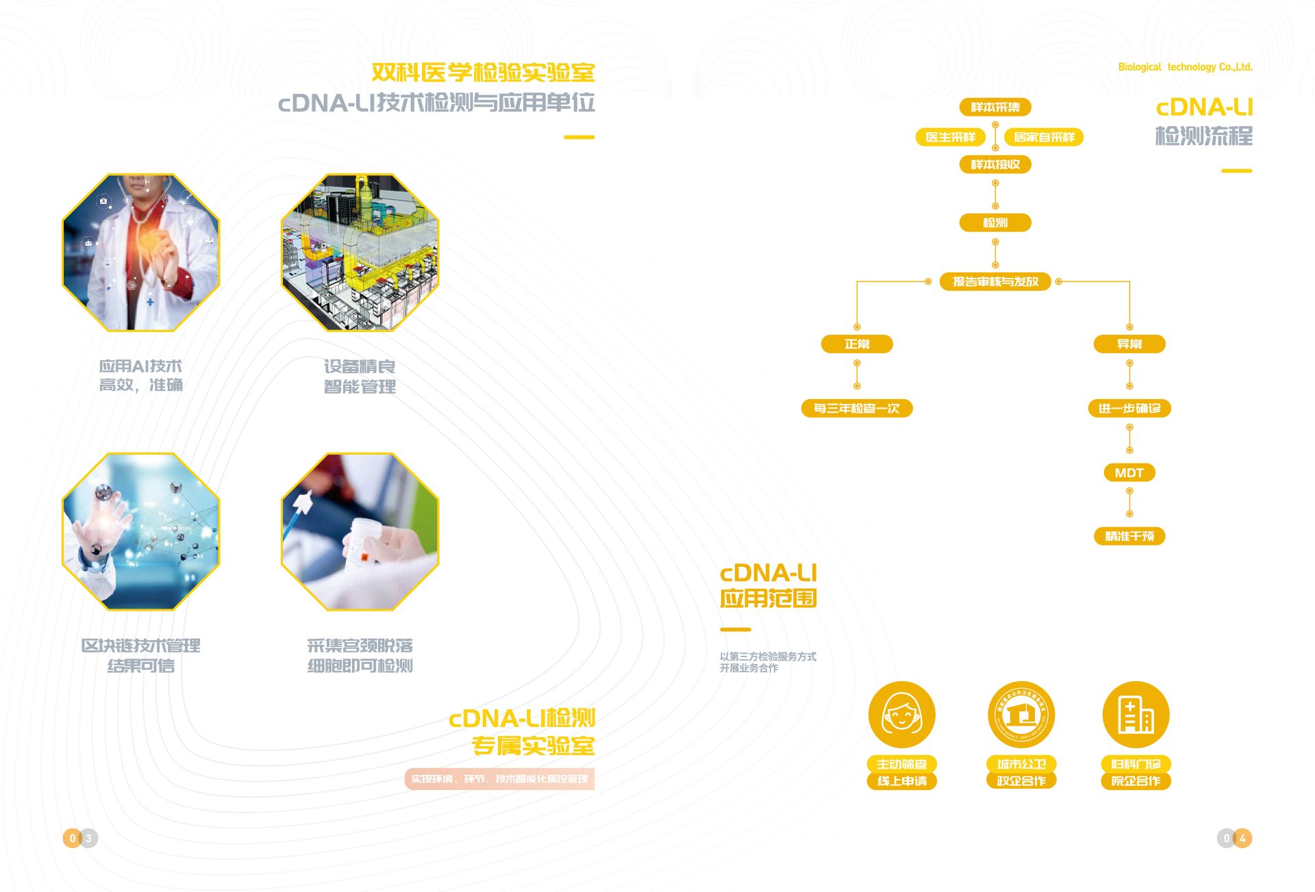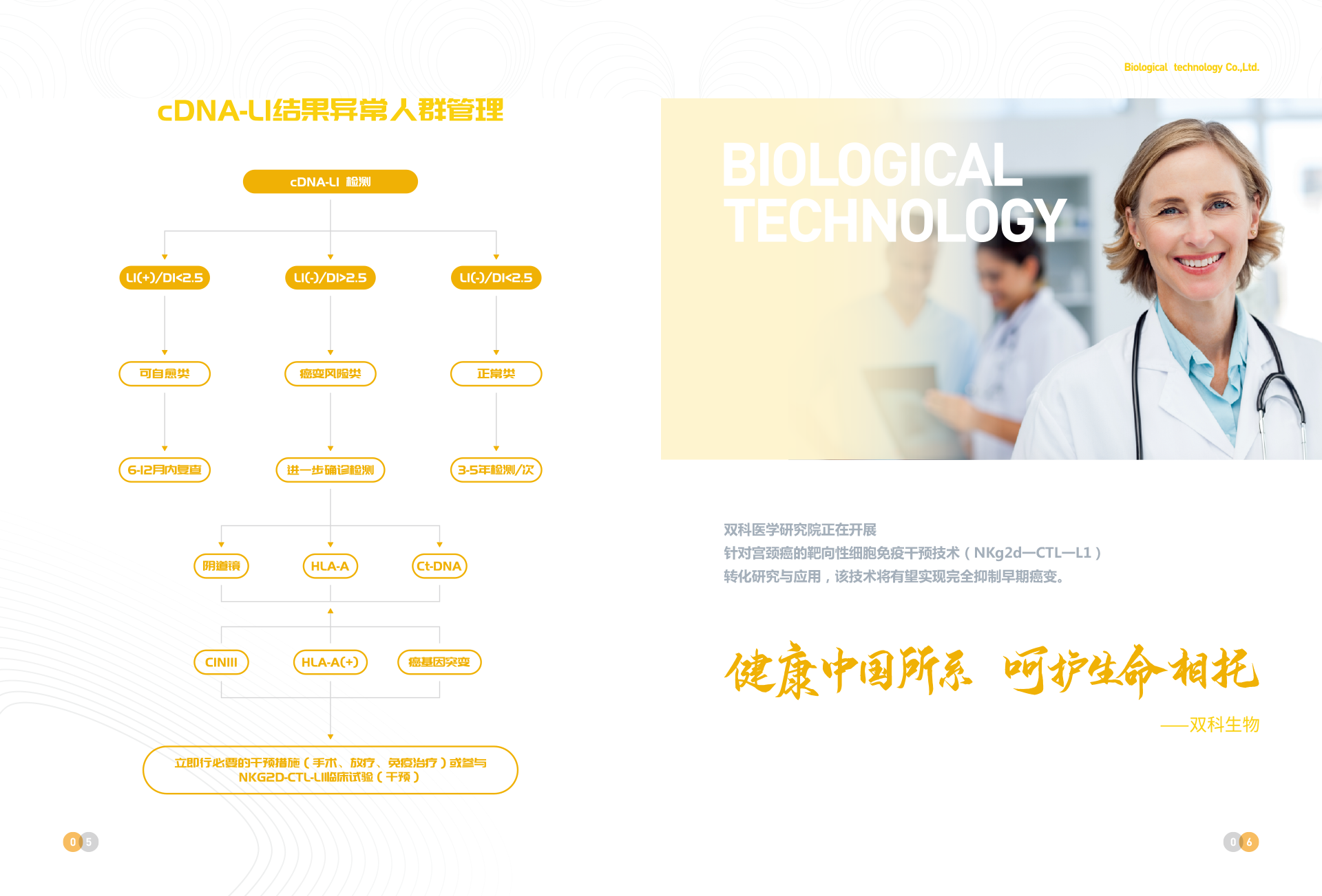 深圳市雙科生物科技有限公司創(chuàng)立于2012年12月12日,是按照國家“十二五”、“十三五”科技創(chuàng)新規(guī)劃、《中國防治慢性病中長期規(guī)劃(2017-2025年)》與《“健康中國2030”規(guī)劃綱要》等政策要求,以“健康中國所系,呵護(hù)生命相托”為公司使命,在“十二五”及“十三五”期間公司先后完成技術(shù)體系建模與試運(yùn)行、服務(wù)體系構(gòu)建與運(yùn)行、腫瘤綜合防控體系建立與實施,在高新生物技術(shù)領(lǐng)域,形成了具有完全自主創(chuàng)新與獨(dú)立知識產(chǎn)權(quán)的常見腫瘤液態(tài)活檢技術(shù)、體細(xì)胞技術(shù)、醫(yī)學(xué)AI技術(shù)、宮頸癌預(yù)警cDNA-L1技術(shù)、腦卒中早期預(yù)警MTHFR/MTRR技術(shù) 、 N-MDT技術(shù)、“防-控`-?!奔夹g(shù)等和服務(wù)體系。